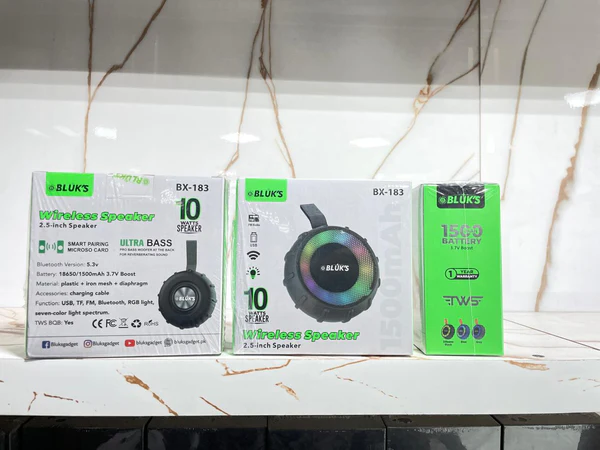 Experience bold, immersive sound with the BLUK’S BX-183, your go-to portable Bluetooth speaker built for power, portability, and personality. Whether you’re at home, on the move, or lighting up a party, the BX-183 delivers booming bass, vibrant lighting, and smart wireless functionality — all in one compact design.