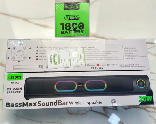 Elevate your music with the BX-184 BassMax, a sleek and powerful portable wireless soundbar built for those who crave style and performance. Whether you’re at home, at a party, or on the move, enjoy rich stereo sound, intelligent controls, and vibrant LED lighting that transforms any space into a soundstage.